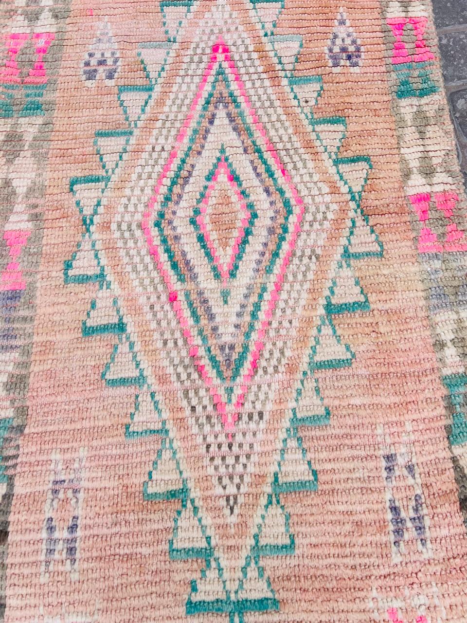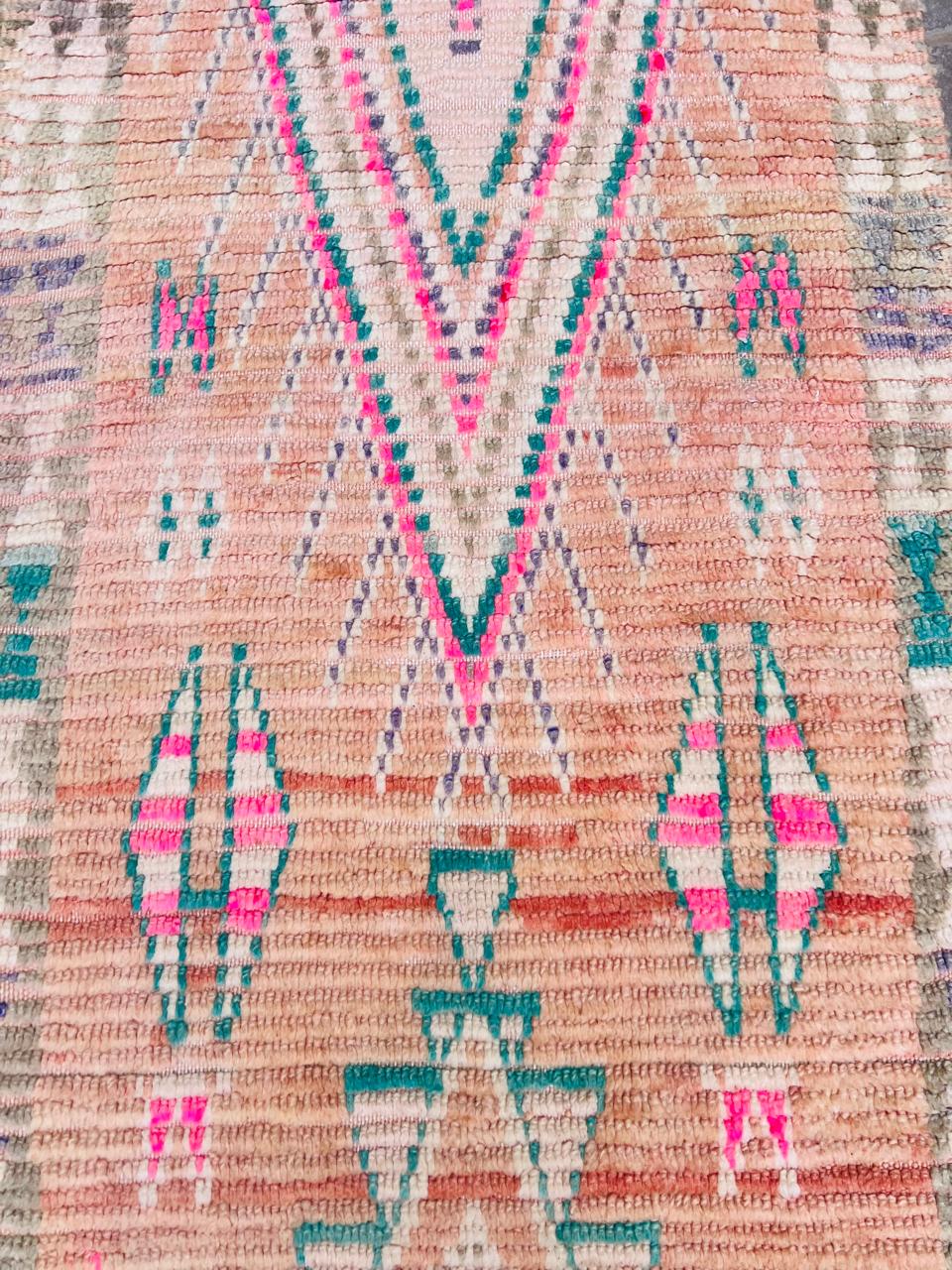 En vakker løper med mønster i duse fargekombinasjoner. Nydelig. Disse teppene er vanskelig å oppdrive, prisene går opp på grunn av at etterspørsel er høy. Denne vintage bejaad løperen finner du ikke hos naboen! Vil gi deg masse farge, varme og personlighet. Sjarmerende og tidløs.