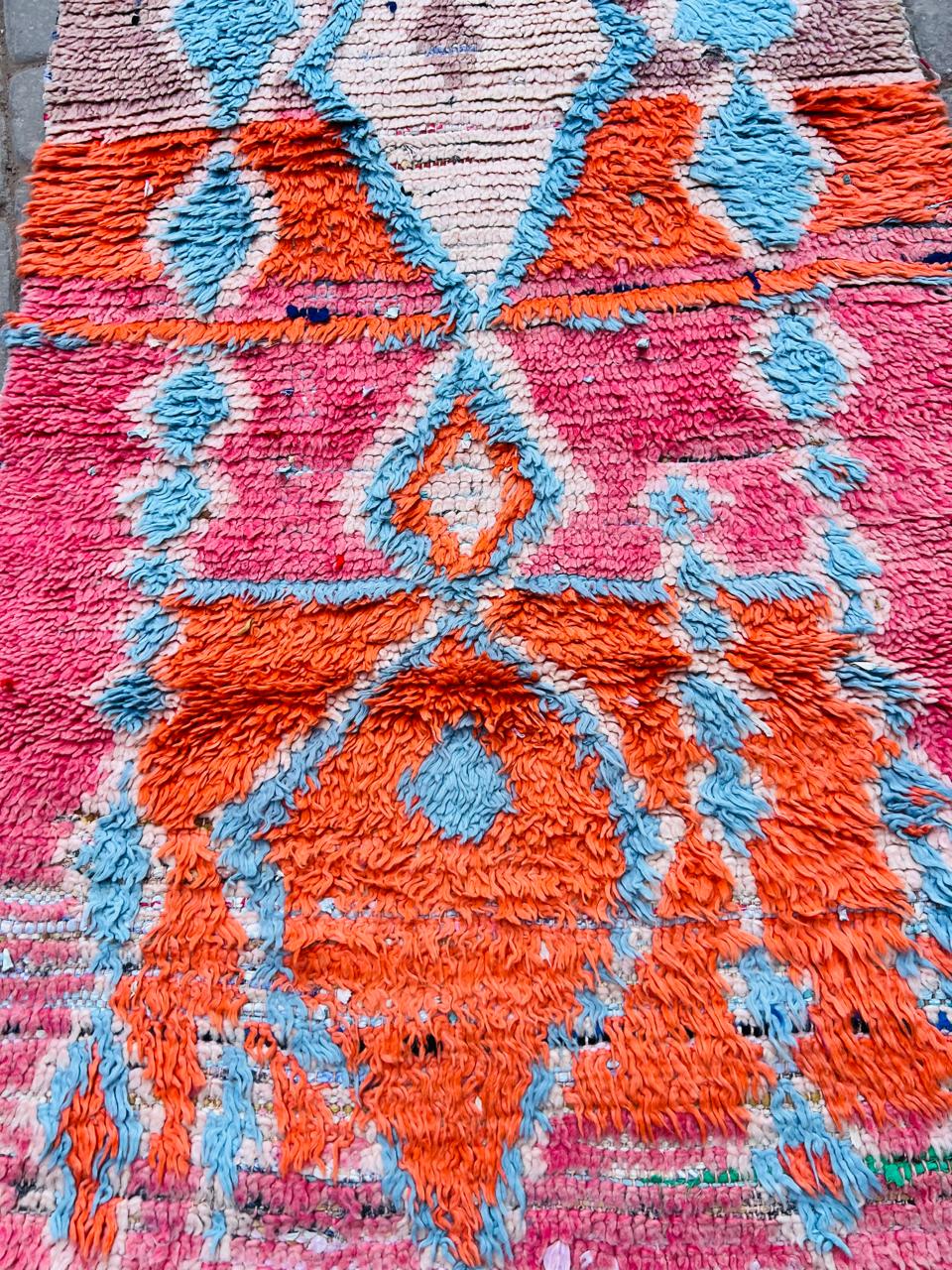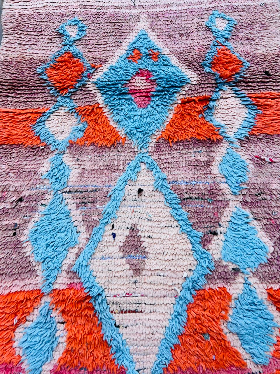 One of a kind løper!! Dette er sjelden vare. Det er langt mellom de fineste løperne fra Marokko. Friske og klare farger og i fin stand og størrelse. Litt skjev og veldig sjarmerende.